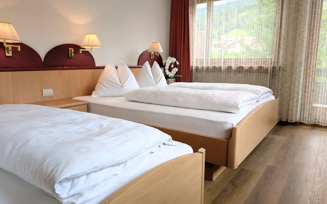 ... komfortable und geräumige Zimmer mit 2,3 oder 4 Betten. Mit Blick auf unsere Dolomiten wie La Crusc und Gardenacia ...